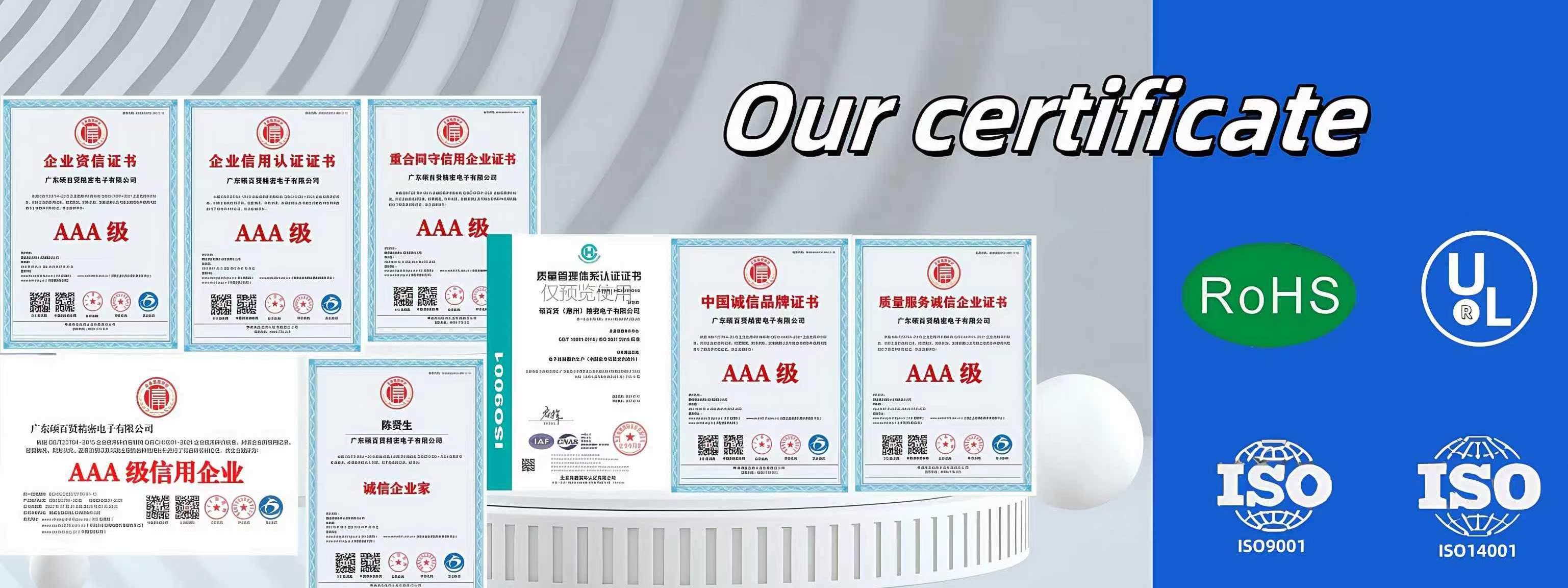 We have obtained a number of certifications, including BSCI (Business Social Compliance Initiative), RoHS (Restriction of Hazardous Substances), REACH (Registration, Evaluation, Authorization and Restriction of Chemicals), CE (Conformité Européenne), FCC (Federal Communications Commission), USB-IF (USB Implementers Forum), Apple MFI (Made for iPhone/iPad/iPod), ETL (Electrical Testing Laboratories), UL (Underwriters Laboratories), SAA (Standards Association of Australia), PSE (Product Safety of Electrical Appliance & Materials), KC (Korea Certification), etc.